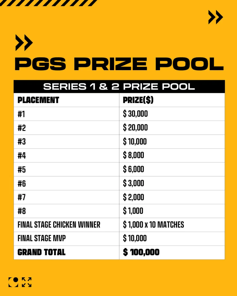 2026整个PGS赛季的总奖金为$2,000,000美元,涵盖全部4个巡回赛和12场系列赛。