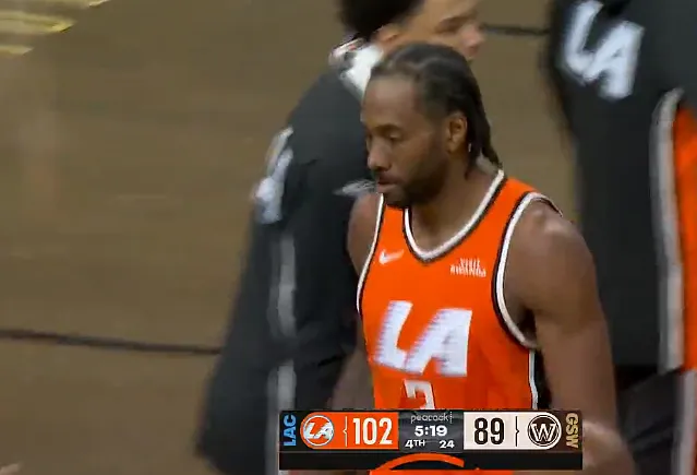 第四节比赛中,伦纳德一打二慢三步上篮拿21分,快船轰出25-10反超勇士13分。